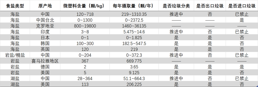 如果一个地区没有进行垃圾分类,也没有禁止垃圾进口,那么食盐中所含微塑料量也相应偏高(湖盐除外)。