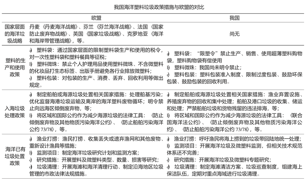 以下是欧盟国家与中国在海洋塑料垃圾领域政策的对比[27]。