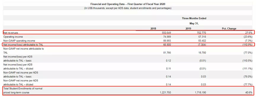 好未来(TAL.N)于日前披露了2020财年第一季度未经审计财务报告(截至2019年5月31日)。