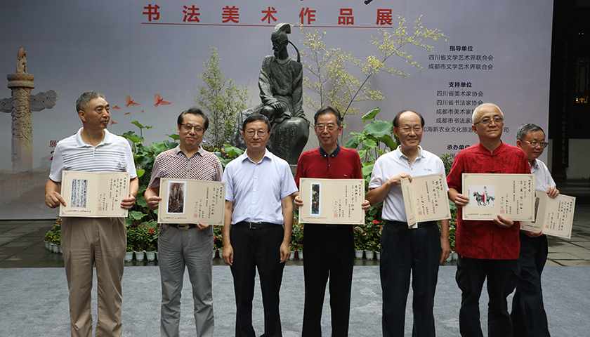 今天,由中国书法馆、四川国防书画院和成都杜甫草堂博物馆联合举办的庆祝中华人民共和国成立70周年《战旗飘扬》书法美术作品展开幕式在成都杜甫草堂博物馆隆重举行。