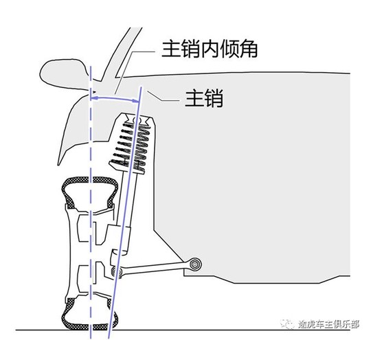 方向盘一拧,前轮就偏一个角度,然后车子就转弯了。那么前轮肯定是围绕一个轴来做左右的偏转的,这条轴就叫做“主销”,我们过弯结束后,方向盘一撒手,前轮会自动“回正”,其实靠的就是主销内倾。