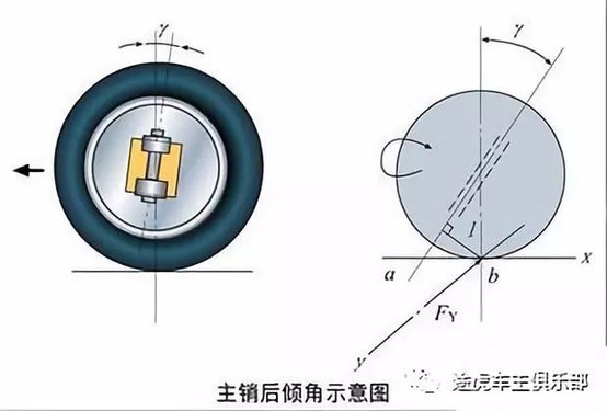 和自行车的“头管”一样,我们知道,自行车的前轮的那条“叉叉”都是倾斜的,这是为啥呢?其实这是用来增加自行车高速行驶时的方向稳定性的。所以我们可以玩“双脱手”就是这道理。汽车为了高速行车的方向稳定性,其实也会采用类似设计,比如这个主销后倾。