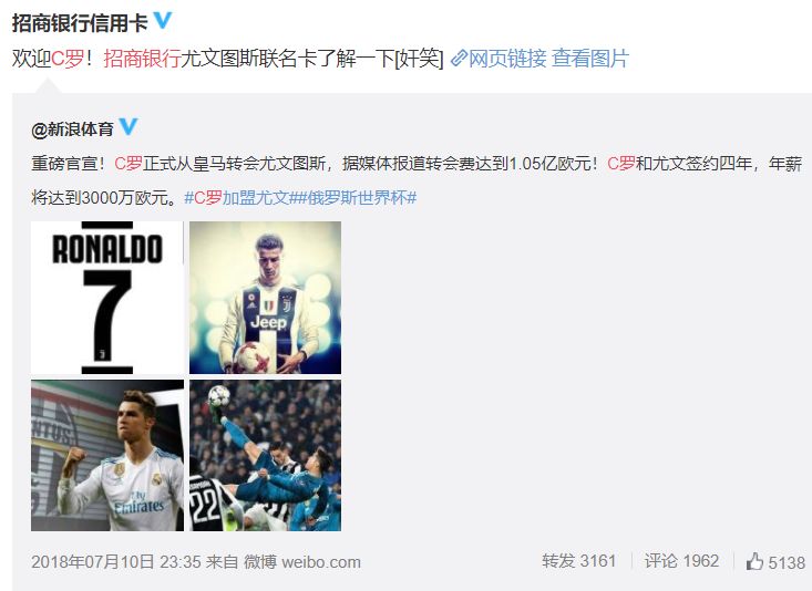 去年C罗转会尤文,直接带动了招商银行尤文主题信用卡的发卡量