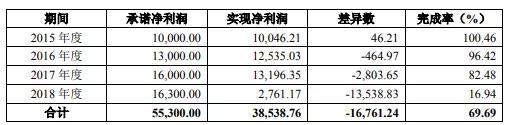 彼时,观印象原股东上海观印象、Impression Creative Inc.作出业绩补偿承诺,承诺2015年至2018年的观印象归母净利润分别不低于1亿元、1.3亿元、1.6亿元、1.63亿元,同时对2018年末的资产减值提供补偿承诺。然而,观印象2016年、2017年,利润实现数为1.25亿元、1.32亿元,完成率分别为96.42%、82.48%,而2018年净利润只有2761.17万元,完成率低至16.94%,承诺期,其累计业绩完成率为69.69%。