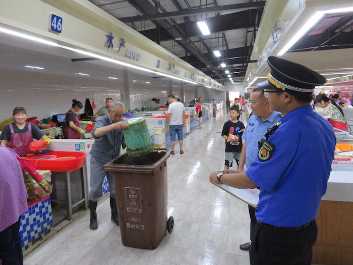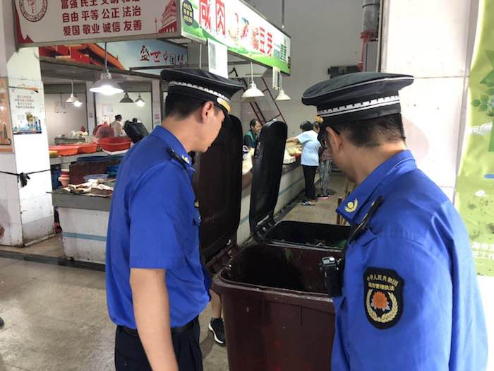 7月一整月,上海市共出动城管执法人员52400人次,开展执法检查18100次,共检查投放环节居住小区、宾馆、商场、餐饮企业等单位34985家(其中餐饮企业10976家、居住小区7355个、企事业单位6261家、小店小铺2681家、宾馆旅馆1810家、商务楼宇1586个、商场1229家、工业科创等各类园区882个、学校培训机构859家、医院476家、党政机关870个);共检查生活垃圾收集、运输作业企业490家次;共检查个人18171人次。