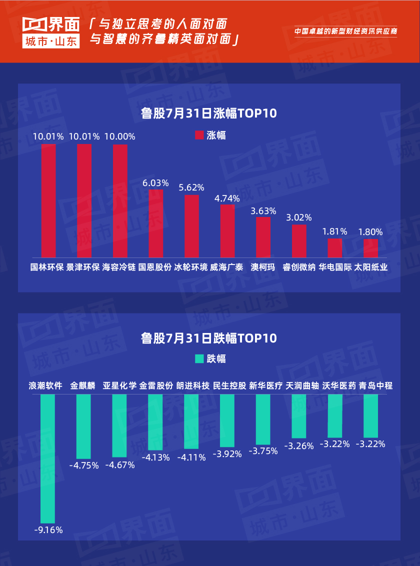 7月31日,山东省内沪深股票有52只个股看涨,144只下跌,8只与上一个交易日收盘价持平;