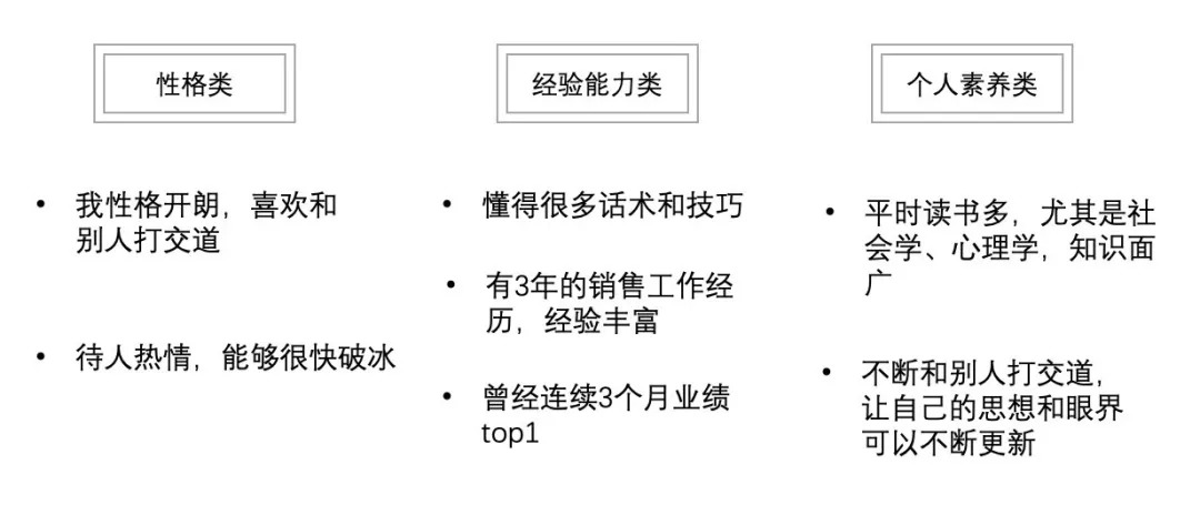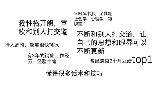 这些想法主要有这几类:性格类、经验能力类、素养类