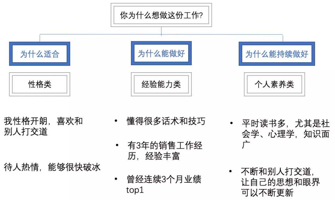 我们以准备面试问题为例,总结归纳一下:你为什么想做销售这份工作?