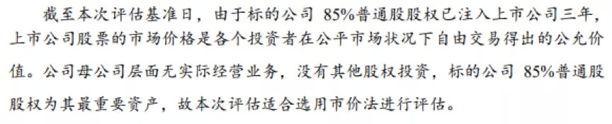 关于本次评估选取不同的评估方法,公司在上海证券交易所问询函的回函中解释道:本次交易的标的资产是上市公司的核心资产(母公司层面无实际经营业务),股票的市场价格能够较好地反映市场上各类投资者在当前市场状况下对安迪苏营养集团普通股股权公允价值的判断。