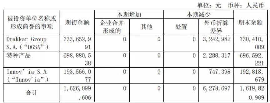 截至2019年6月30日,公司商誉金额约16.3亿元,由三部分构成,并且这三个部分分别对应着公司的三类业务:Drakker Group S.A.相关的商誉主要与功能性产品相关。Innov’ia S.A.相关的商誉主要与其他产品制剂加工服务相关。特种产品相关的商誉主要与2018年收购跨国饲料添加剂生产商Nutriad相关。