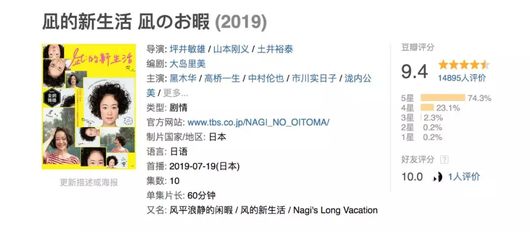 最近有一部爆款日剧叫《凪的新生活》,出了两集,豆瓣评分9.4。