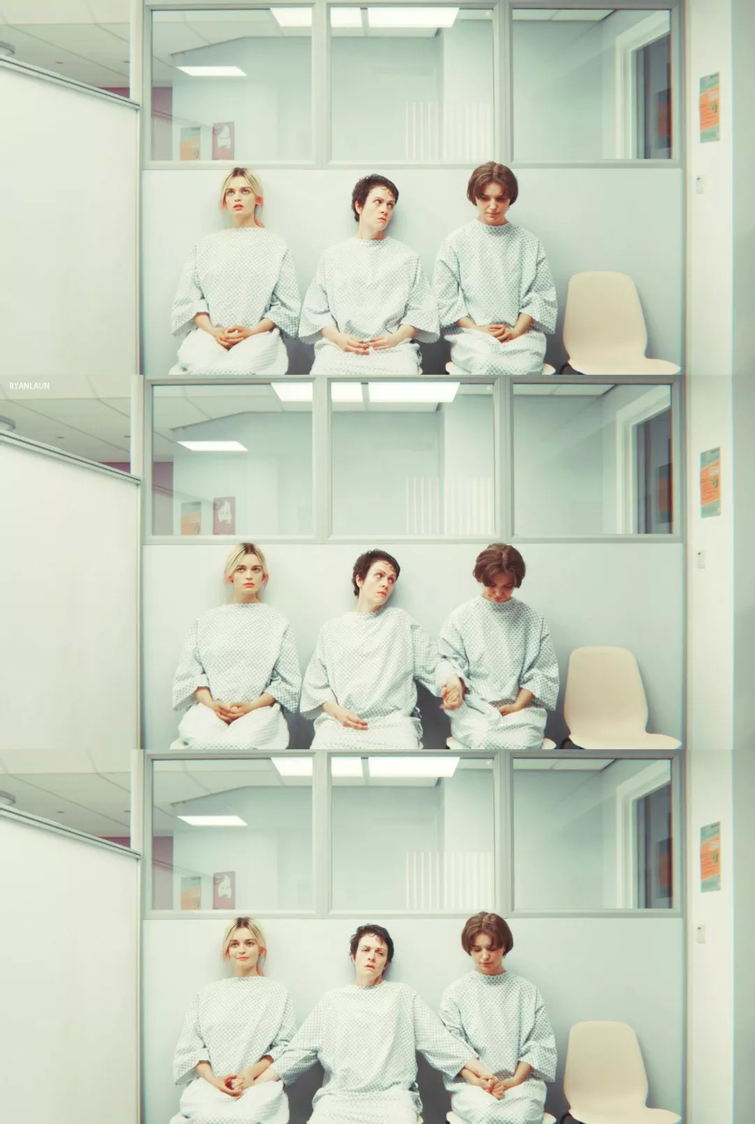 那个场景是很奇妙的,因为在一个面向女性客户的、粉红色风格的医院,竟然看到了一堆男人,看着延禧宫略这样的古装剧。