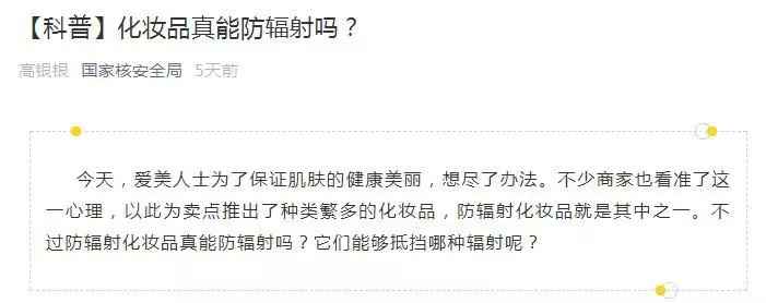 文章还称,“由此也让我们看到,无论何种化妆品想要抵御电离辐射都是不可能的。”