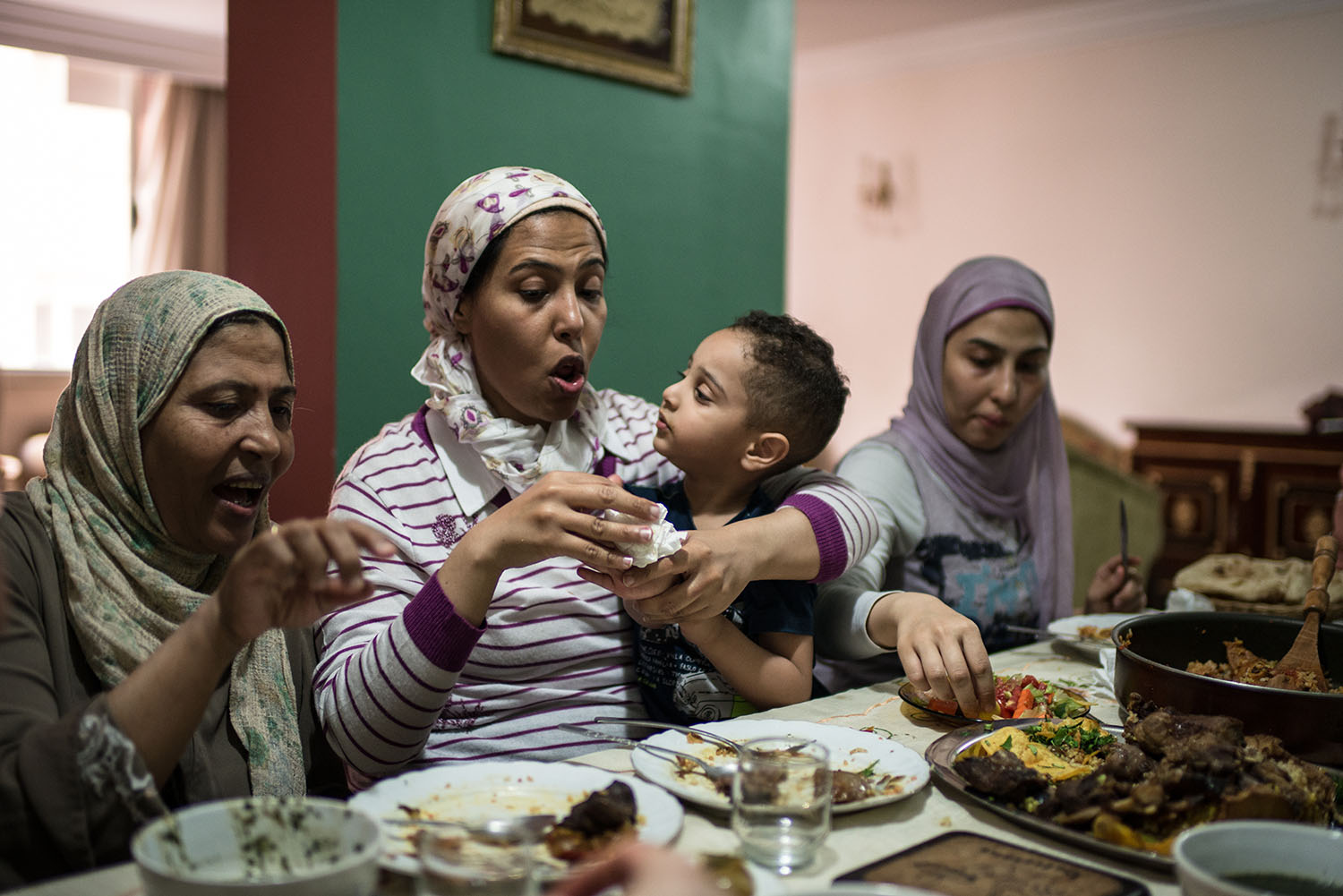 这一天,马尔瓦的母亲、妹妹、丈夫、儿子等家人都齐聚在这间租来的公寓里。我看到了马尔瓦作为一名阿拉伯家庭妇女的贤惠形象——她娴熟地收拾房间、烹煮饭菜,这与她平日自信、干练的职场形象形成了鲜明对比。当天的饭菜非常丰盛,马尔瓦高兴地为大家分盛食物,餐后还端出了精致的自制甜点。