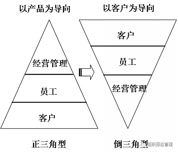 之所以提出“倒三角型”组织结构,是因为有“正三角型”,也就是金字塔型组织结构,包括了直线型组织结构与职能型组织结构两种形式,当金字塔型组织结构出现问题时,自然会对传统组织进行变革,在中国最先提出倒三角型组织结构的知名企业是海尔,随后又有一批企业认为组织结构是倒三角型。