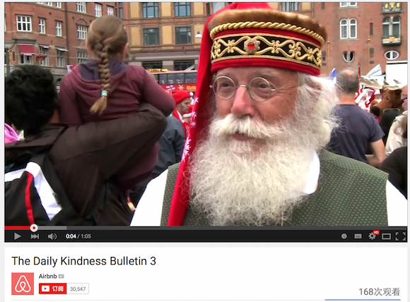 旅行租房网站Airbnb最近一段时间都围绕着“人性本善?(Is Mankind?)”的主题做着市场推广。它先是做了一段1分钟的主旨广告视频,上线YouTube一周观看人次已突破217万。