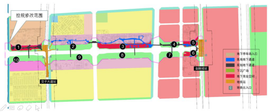 此后,交子大道地下通道进行了规划调整,修改范围总用地面积约25.15公顷,增加了7条地下通道,以及商业、地下停车场等配套。