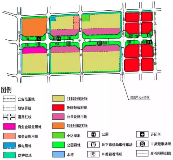 ·在1#公园绿地规划地下空间,用于商业、公共通道和地下停车场建设;