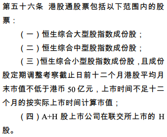 据了解,此次修订的纳入条件中,上市6个月加上20个港股交易日,旨在保证股票稳定交易前时长;近183日中的港股交易日日均市值不低于港币 200 亿元,港股总成交额不低于港币60 亿元则是对个股市值及流动性提出要求。