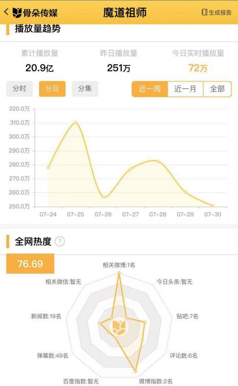 2018年7月7日动画版《魔道祖师》上线,上线15分钟,播放量破2亿。