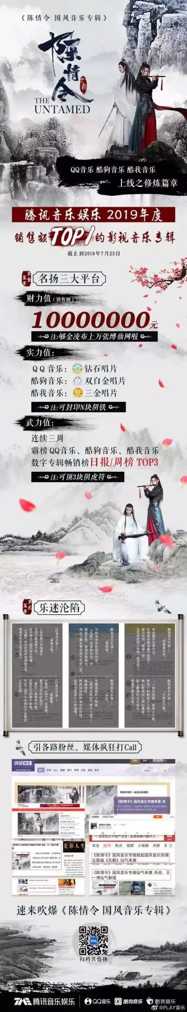 腾讯立即联合自家音乐跟其他音乐平台,国风大碟立马安排上: