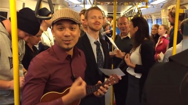 这不是印度电影或《歌舞青春》的剧情。7月20日,澳大利亚珀斯的一个周一早上,这样的事情的确发生了。只靠几个人和一把尤克里里,就将地铁车厢的气氛炒得火热。