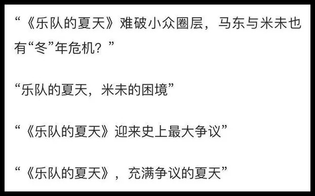 某位互联网大佬曾解释未来的互联网是什么,左边内容,右边连接,中间是价值观。《乐队的夏天》符合了这句话,以前的中国人没有价值观的概念,但是对于年轻一代来说,价值观是他们所看重的。以前中国人不喜欢公开表达自我态度,而现在有没有独特的态度,是KOL的基本要素。