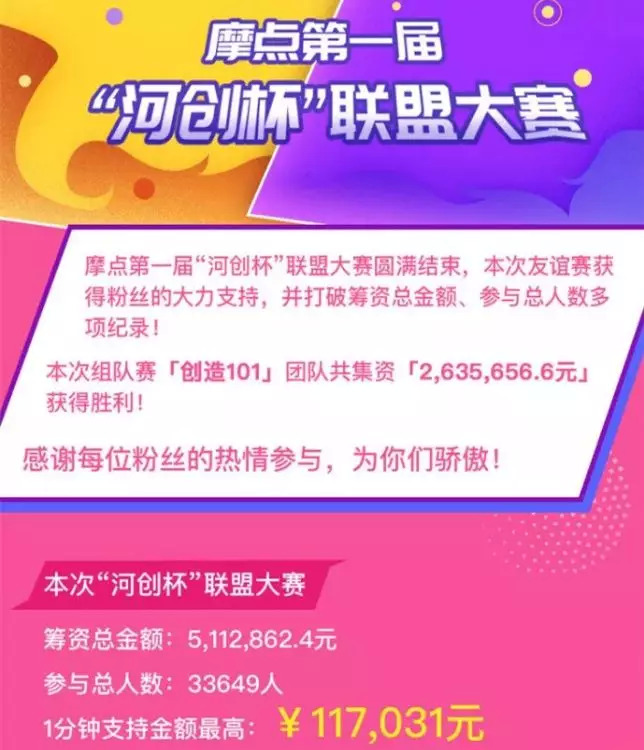 这些占据强势地位的平台方自主推出的团体偶像,自然大幅度挤压了48系的生存空间。在毒眸往期文章中提到,去年的《创造101》比赛期间,曾举办过摩点集资举办的第一届“河创杯”联盟大赛。在赛前,48系饭圈戏称101系“村外”集资(团队不成熟、粉丝协作力低),但最终却被101系粉丝以23813的总集资人数和近264万的筹资金额打败。而比赛结束后,从爆款节目诞生、背靠腾讯的101系女团,在曝光度和粉丝数量上,也比以线下剧场为主的48系更具优势。