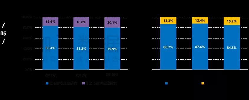 部分游戏企业对于核心的单款产品具备较强依赖性,单款产品占据其游戏总收入超过五成,这就导致如果核心产品流水下滑,企业业绩会直接受到影响,企业抵御外部风险能力较弱。在2018年游戏业务收入占比超过总营收30%的上市企业中,有14.0%的企业单款产品收入超过总营收的50%。