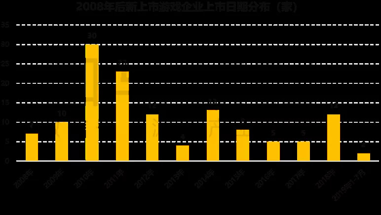 2008年至今新增上市游戏企业超过130家,其中2010年—2014年为游戏企业上市高峰期,八成以上游戏企业通过A股上市。但随着游戏企业业绩不稳定、商誉风险升高等负面因素的增多,近年来A股资本市场对于游戏企业的准入门槛提升,监管与审查也更为严格,但2018年上市游戏企业仍达到12家,更多游戏企业通过港股与美股上市,这说明优质游戏企业仍具备较高的上市机会。