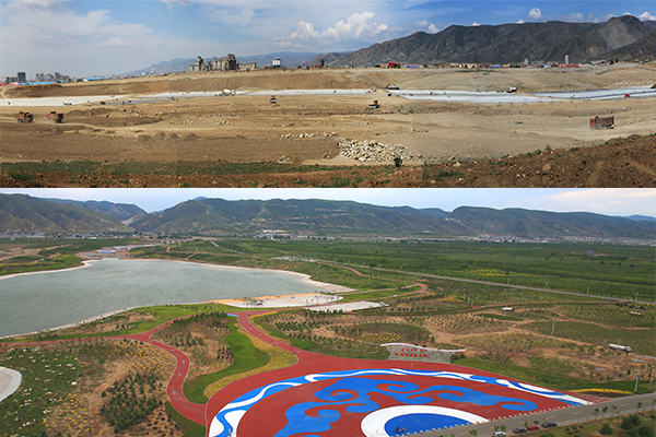 哈拉沁沟建设前后对比图(上图为建设前)。中共呼和浩特市委网信办供图