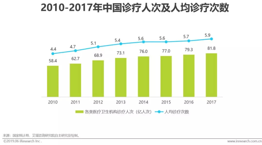 传统意义上医疗健康公共服务性质较强,由于智能化技术对医疗健康环节效率提升较为典型,故纳入本报告的讨论范围。智能化技术的应用主要有:医学药物研发、智能临床辅助决策、病例语音录入及结构化、医学影像分析等。医学药物研发方面,新药研发平均总耗时10-15年,花费80亿元,新药研发周期长、成本高、失败率高等特点促使人工智能等技术开始被药企接受,深入临床前及临床研究阶段。诊疗方面,根据中国国家统计局的数据显示,从2010年到2017年中国的诊疗人次从58.4亿人次上升至81.8亿人次,人均就诊次数从4.4次上升至5.9次,随着现代工作压力增大以及不良生活习惯的影响,糖尿病、高血压等慢性病发病率也在不断上升,目前医疗机构的医生存在严重不足的情况,以科技补人才需求突出,医学结构化与大型医学知识图谱的建立,对辅助诊疗有重大意义,病例语音录入、医学影像分析等也在优化就诊流程、提高问诊效率方面有着突出作用。