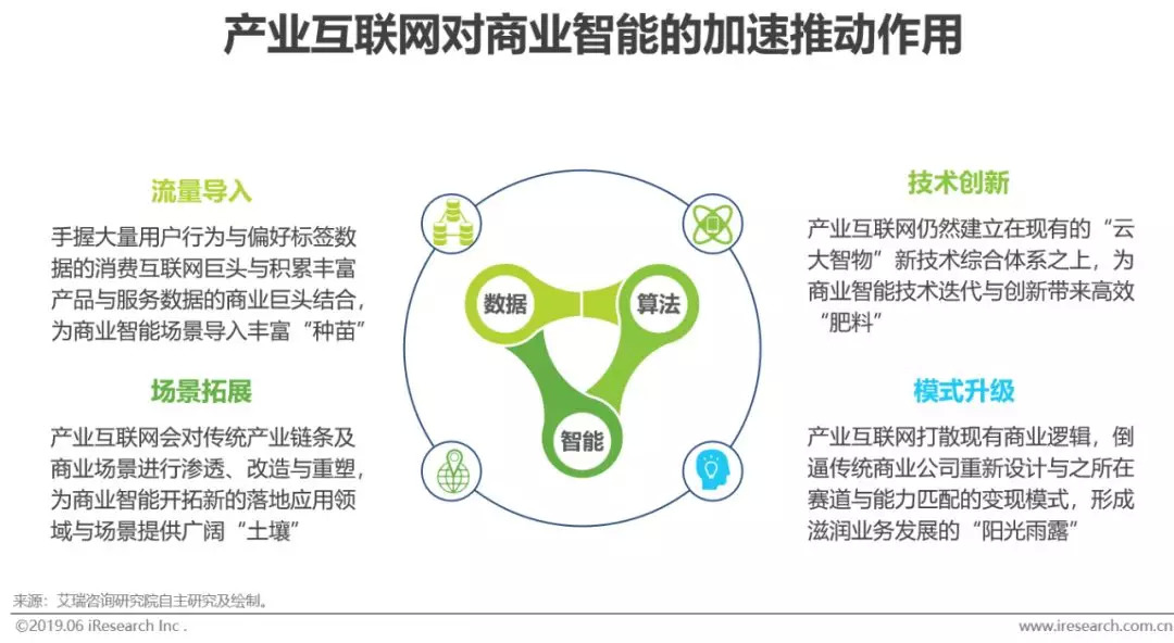 产业互联网驱动:产业互联网会重建流量、科技、场景之间的共生关系,创造新型的商业发展生态。同时,产业互联网会在流量端与应用场景侧为商业智能模式创新带来机会。