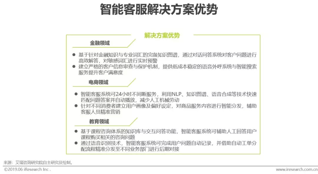 客户服务作为各类商业场景搭建实现过程的重要环节,是维系企业与客户之间连接关系的重要载体,对企业产品/服务销售、市场拓展、品牌影响力等方面具有深度影响。传统客服方式存在人员培训及留存成本高、质量效果把控难度大、售前转化率较低等共性问题,一定程度上制约了企业的经营效率改善与利润提升。智能客服系统可根据行业知识和企业业务搭建专业知识库,通过构建开放式问答及交互式对话技能,对客户提出的咨询问题快速输出匹配答案。此外,智能客服产品的后台管理系统可有效代替传统人工抽检,解决抽检覆盖率低、检验标准存在差异、非实时被动响应等问题。目前金融、电商、教育等领域企业用户对智能客服系统接受度较高,标准化产品体系建设相对成熟。