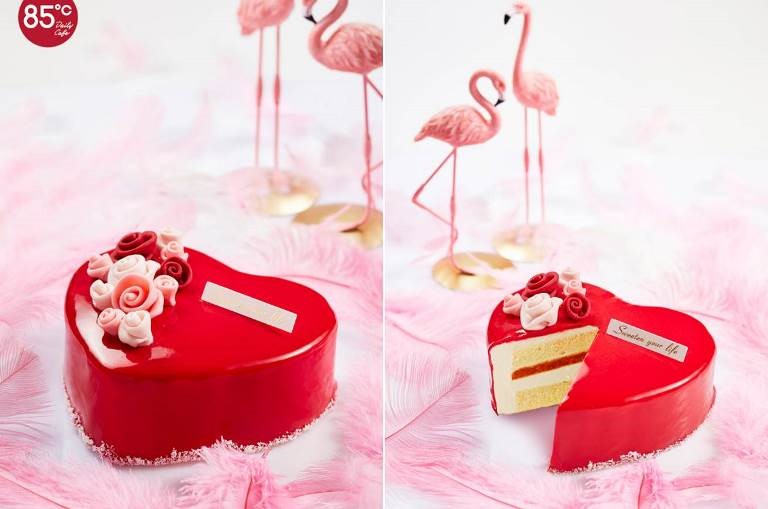 热恋中,爱情的温度是炽热的,爱情的颜色是火红的,爱情的形状当属爱心状。来自俄罗斯的镜面蛋糕,外表晶莹剔透,颇像一件艺术品,给人以美的享受。85度C七夕“甜心蛋糕”见证情侣CP美好爱情,红色巧克力淋面酱下包裹着,绵密柔软的戚风蛋糕与清爽酸甜的酸奶慕斯,搭配脐橙果酱,另味蕾体验更加清新和富有层次。表面以白、粉、红不同颜色的玫瑰花造型加以点缀,倍加浓情与甜蜜。