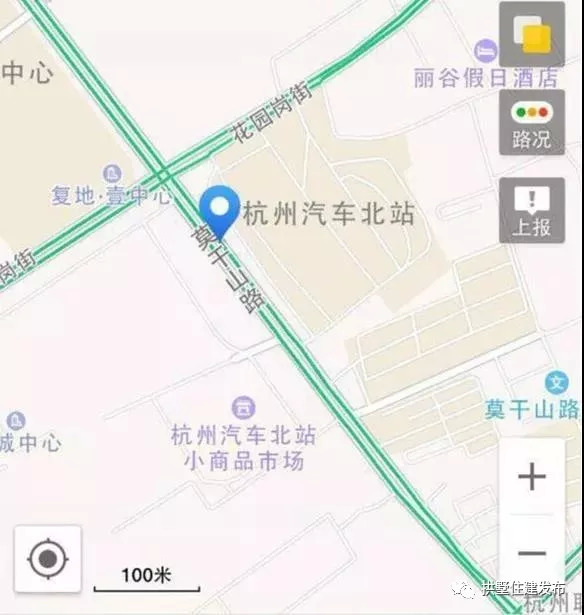 汽车北站:位于育苗路与莫干山路交叉口南侧,主体沿莫干山路南北向布置。