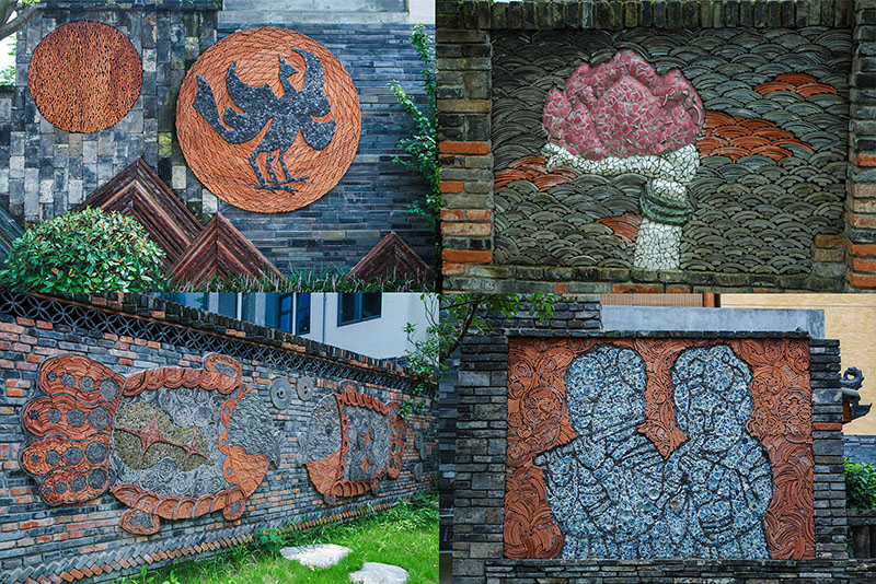 整个社区按照景区标准来走,创造新的审美的要素。比如社区围墙,所有都按照景区标准用设计和艺术思维来打造。有的墙是用明代传统中式的水缸,有的墙用65根明代的排水沟来做,有的墙是用旧砖和施工单位留下来的废渣制作的。有的或是清代的磨盘,或是最普遍的红沙石的材料……“幸福公社”每家每户的墙都是独一无二的。围墙不仅仅是安防的隔离,更成为社区的一个景观,成为了精神、审美的表达。