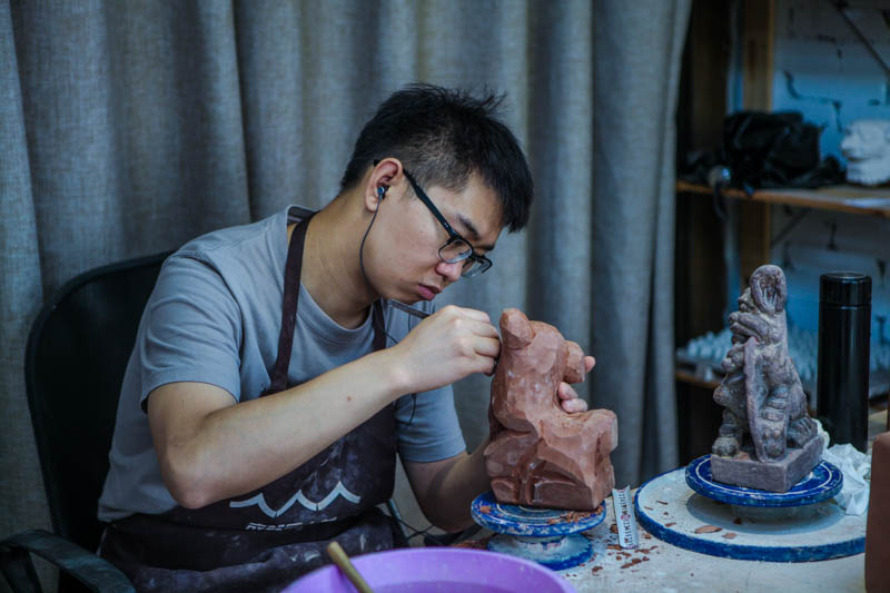 结束与史御力的对话,午饭时间已经悄然过去,匠人村依旧安详自在。雕塑家小伍(化名)手中的刻刀孜孜不倦地在泥塑上滑动,他在期待下一个作品诞生,他的眼里除了对艺术的执念没有任何杂质,他不会打扰走进工作室的游客欣赏和拍照,因为他希望收获的是认同与共鸣;再书房的刘姐(化名)与村里每日来这里看书的两个大爷聊着这个夏天的雨,忙完农活到书店里看会书,成了两个大爷生活中必不可少的一角,他们种地,却也想了解雨果和梵高。雨后稻田里的青蛙,和树上的知了交织着午后的夏日阳光,幸福公社的炊烟里,有白水茄子的清甜和蒜苗爆炒回锅肉的油香。