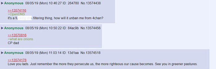正如普瑞斯所预测,在得知Cloudflare将停止服务之后,8Chan的用户在互相道别之余,依然没有停止咒骂,部分用户誓言“没有什么能阻止我们仇恨犹太人!”