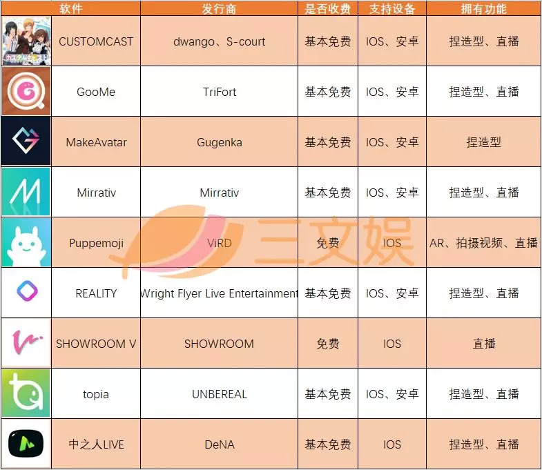 要做虚拟主播,门槛最低的硬件就是智能手机了,也因为其成本够低,所以角色模型和动作捕捉的精细程度都较为局限。下面是9款智能手机能够使用的虚拟主播相关APP。