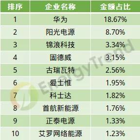 从企业方面来看,华为、阳光电源和今年进入A股市场的锦浪科技持续引领2019年上年逆变器出口热潮,稳坐光伏企业逆变器出口头三把交椅!前五强企业出口金额占比为36.44%,头部企业出口集中度进一步提升。