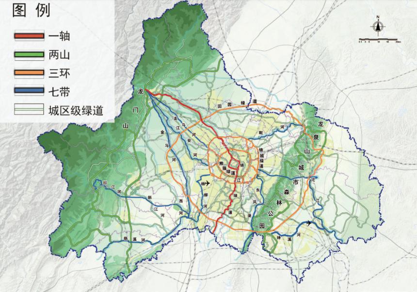 身处“西控”的温江,以成温邛高速为界,优化形成了“南城北林”的总体空间格局。同时,立足于温江“水网密布、花木成林、沃野成片”的生态本底特征,规划构建了“一区两廊、四河千渠、两湖三园”的生态格局。