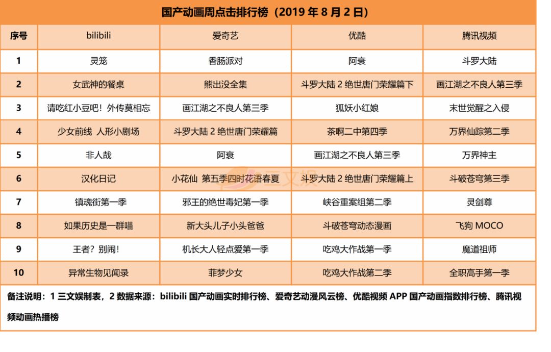 B站国产动画方面,截止至2019年8月2日,《灵笼》以3495215分的综合得分蝉联榜首。