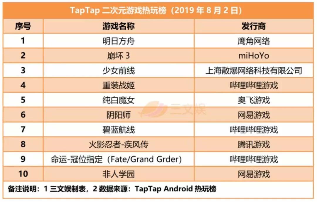 TapTap二次元游戏热玩榜