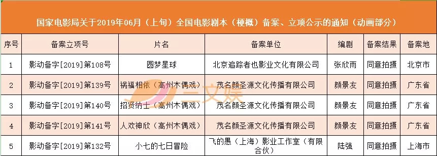 8月1日,国家新闻出版广电总局公布了2019年06月(上旬)全国电影剧本(梗概)备案、立项公示的通知,其中有包括《圆梦星球》在内的5部动画电影。