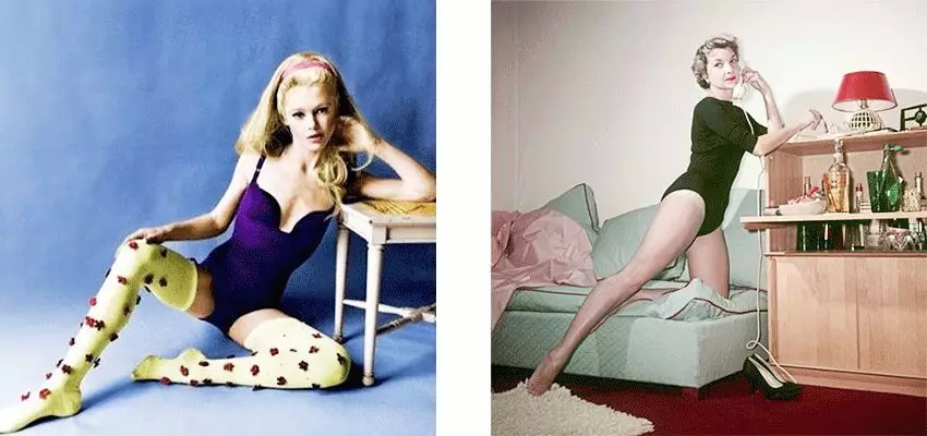在上世纪60年代呢,这种穿法其实就在时尚圈开始流行起来了,但当时穿的是一种叫bodysuit(紧身连体衣)的衣服~
