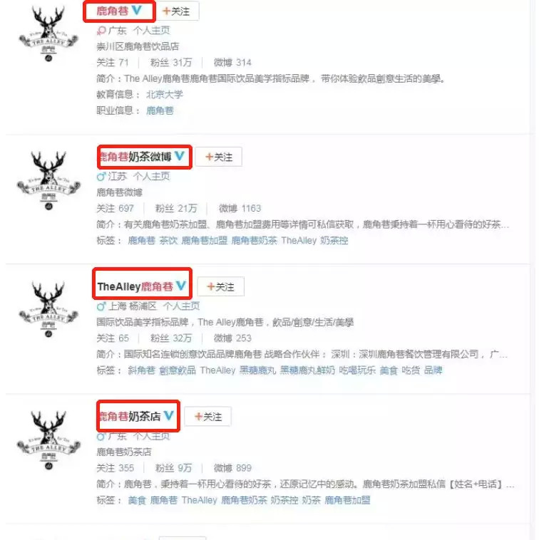 血本无归版:如果加盟鹿角巷,哪个才是真正的官微?