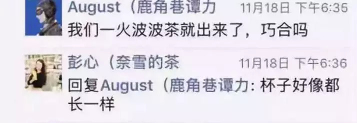 茶饮品牌鹿角巷大陆地区品牌总经理谭力随后也加入战局,指责喜茶“波波茶”抄袭,彭心也补充道,“杯子好像都长一样”。