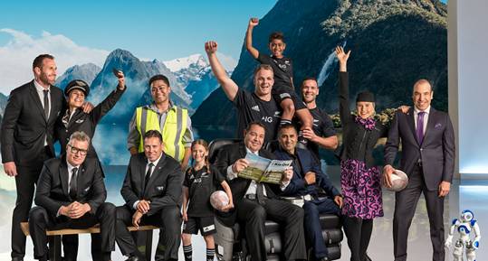 连续十年以创意飞行安全视频吸引全球目光的新西兰航空,今年不但再度携手全黑队拍摄安全视频,更直接从Air New Zealand摇身一变成为全黑队航空Air All Blacks,体现新西兰人幽默精神以及对橄榄球的狂热,助力新西兰橄榄球国家队在即将到来的全新赛季再创佳绩。