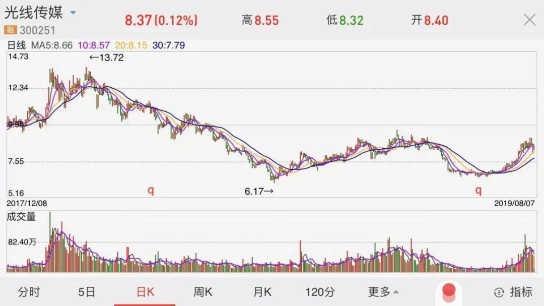 受业绩及行业环境影响,光线传媒去年开年阶段才开始复苏的股价(最高时超过了13元),从2018年下半年起又不断下跌,今年股价最低时甚至只有6元左右,一年多时间里跌幅超过了5成。但就在《哪吒》大卖的这半个多月里,光线传媒股价再度迎来反弹,从大规模点映开始前的7.12元涨到过最高9元左右,半个月内涨幅超过了25%。